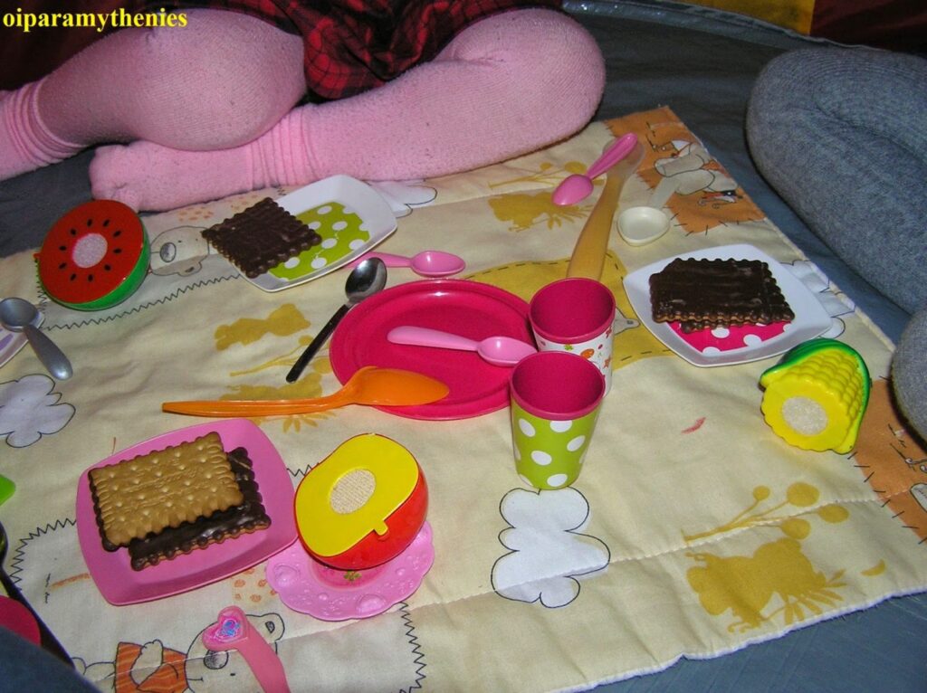 - Στήστε μια αυτοσχέδια ή έτοιμη παιδική σκηνή.