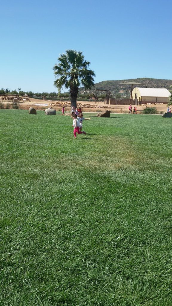 Πριν την επίδειξη με τα δελφίνια κάναμε ένα διάλειμμα στη καφετέρια. Μπρόστα απο τη καφετέρια υπάρχει μεγάλη έκταση απο γκαζόν που οι παραμυθένιες έτρεξαν γελώντας και ξαπλωσαν.