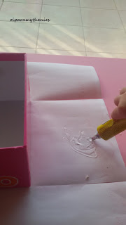 - Ντύνουμε με κόκκινη κόλλα γλασέ το κουτί.