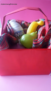 Αν δεν έχετε ψεύτικα φρούτα, λαχανικά, μπορείτε να τα ζωγραφίσετε σε χαρτόνι και να τα κόψετε.