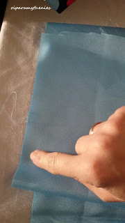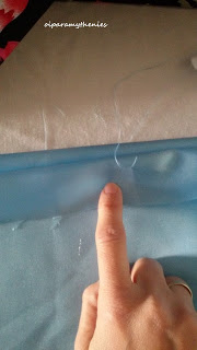 - Περνάτε μέσα από περιθώριο το λάστιχο. Στην άκρη του λάστιχου βάλτε μια παραμάνα για να το τραβάτε εύκολα.