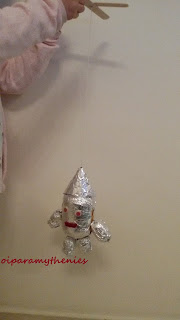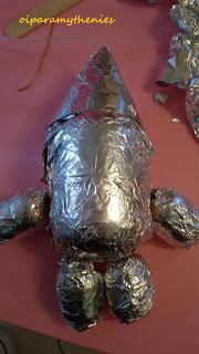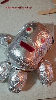 Ντύνετε το ρομπότ με αλουμινόχαρτο. Βάζετε τα ματάκια.
