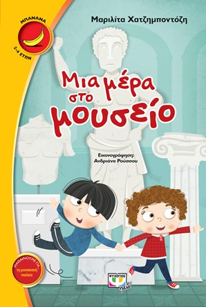 Η εικονογράφος Α. Ρούσσου δένει με τα χρώματα της τις εικόνες μιας άλλης εποχής (αγάλματα, πίνακες) με τα παιδικά πρόσωπα γεμάτα περιέργεια και χαμόγελα.