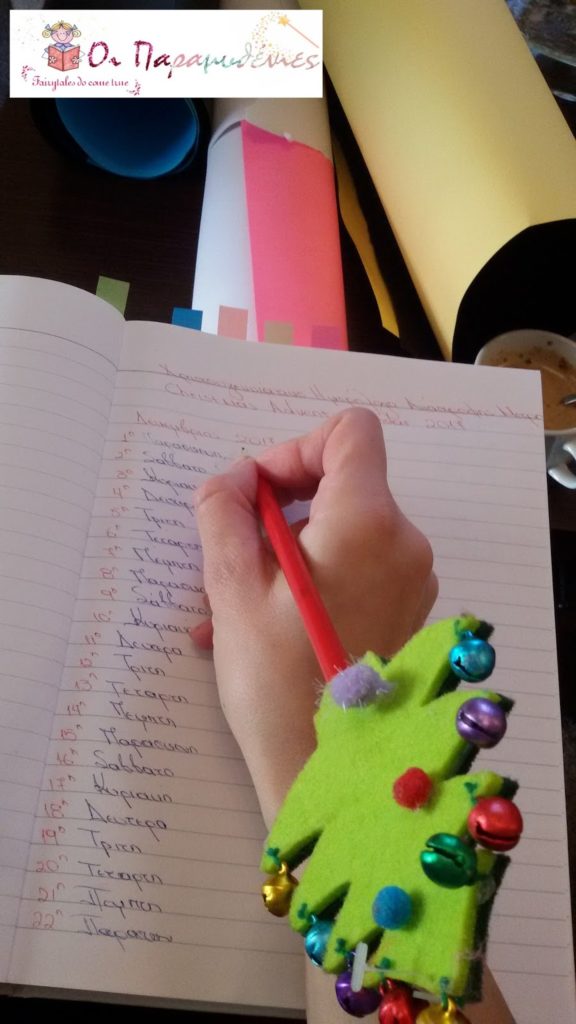 Σε ένα χαρτί σημείωσα κάθε δραστηριότητα ή δώρακι για κάθε μια ημέρα μέχρι τη Πρωτοχρονιά που θα τους φέρει ο Αη Βασίλης τα δώρα τους.