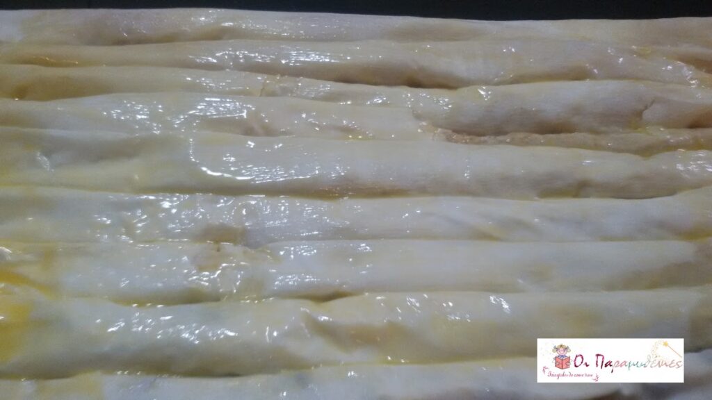 Τα τοποθετουμε το ένα δίπλα στο άλλο σε βουτυρωμένο ταψι.