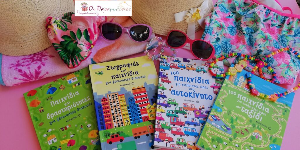 Βιβλία που περιέχουν πολλά διαφορετικά παιχνίδια μνήμης, γνώσεων, παρατηρητικότητας, θα κρατήσουν με δημιουργικό τρόπο ευχάριστη συντροφιά στα παιδιά στο ταξίδι αλλά και στον ελεύθερο χρόνο των διακοπών.