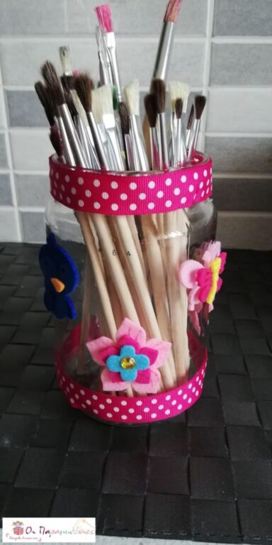 Ένα γυάλινο βαζάκι μεταμορφώθηκε για τα πινέλα ζωγραφικής