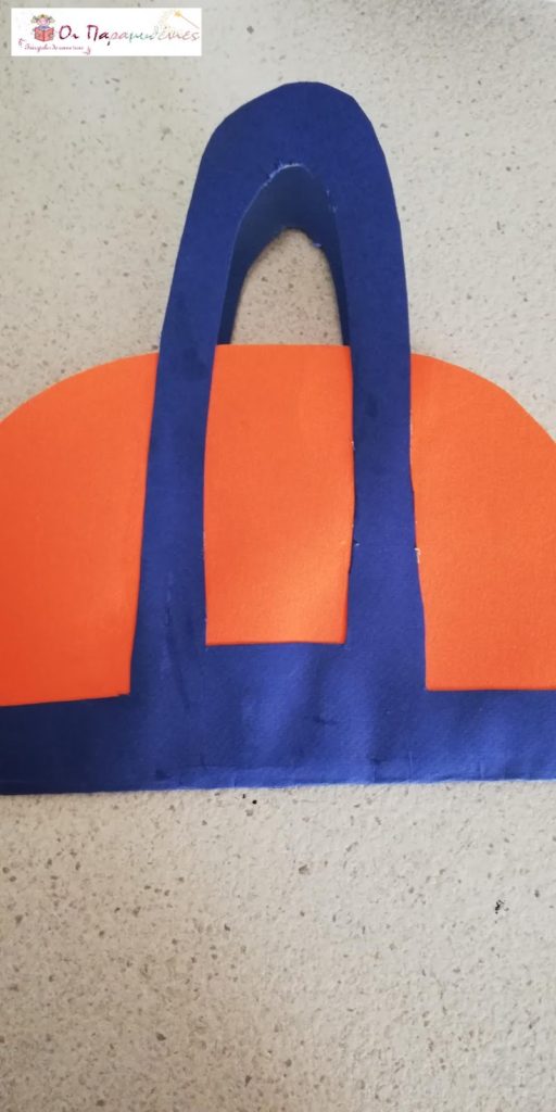 Στο μικρό φιλο τους έκοψαν σε πορτοκαλί και μπλε χρώμα για να φτιάξουν κάρτα σακίδιο.