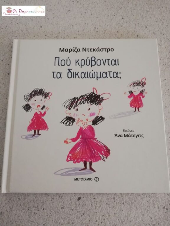 Το βιβλίο Που κρύβονται τα δικαιώματα; της Μαρίζας Ντεκάστρο σε εικονογράφηση της Άνα Ματεγιτς κυκλοφορεί απο τις εκδόσεις Μεταίχμιο και ήρθε για να βοηθήσει τα παιδιά απο 5 ετών να καταλάβουν με απλό τρόπο τι είναι οι νόμοι, πως φτιάχνονται, ποια είναι τα δικαιώματα και υποχρεώσεις των πολιτών και πως προστατεύεται το Σύνταγμα.