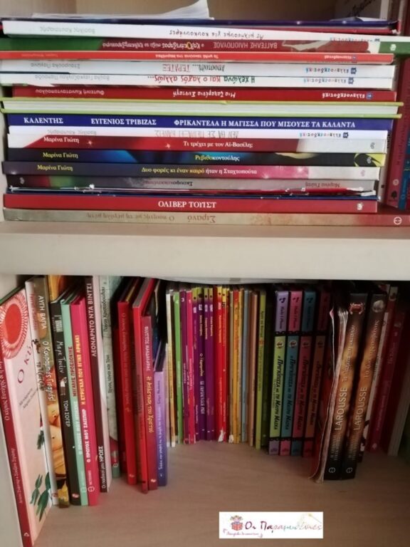 Καθώς μεγαλώνουν οι παραμυθένιες μου υπάρχουν βιβλία που είτε τα έχουν πολυδιαβάσει είτε δεν είναι πια για την ηλικία τους. Κάθε που μπαίνει το καλοκαίρι (τα γενέθλια τους) ή κάθε φορά που νιώθω πως η βιβλιοθήκη θα βουλιάξει συγκεντρώνουν τα βιβλία που δεν διαβάζουν. Κάποια τα χαρίζουμε σε φίλους και κάποια τα προσφέρουμε σε κοινοφελή ιδρύματα.