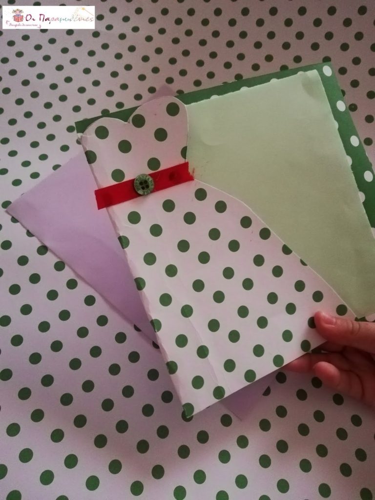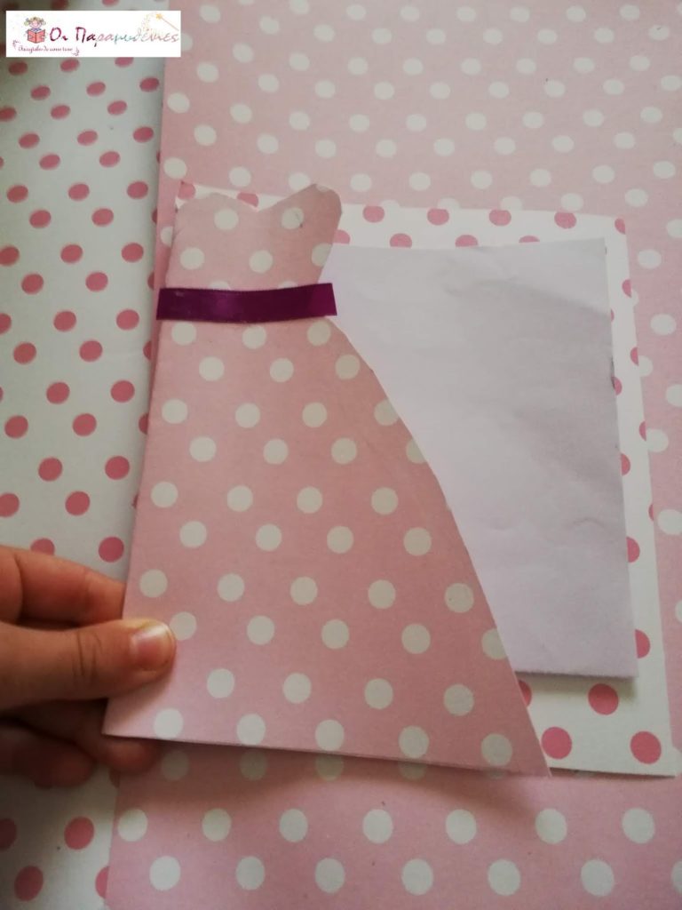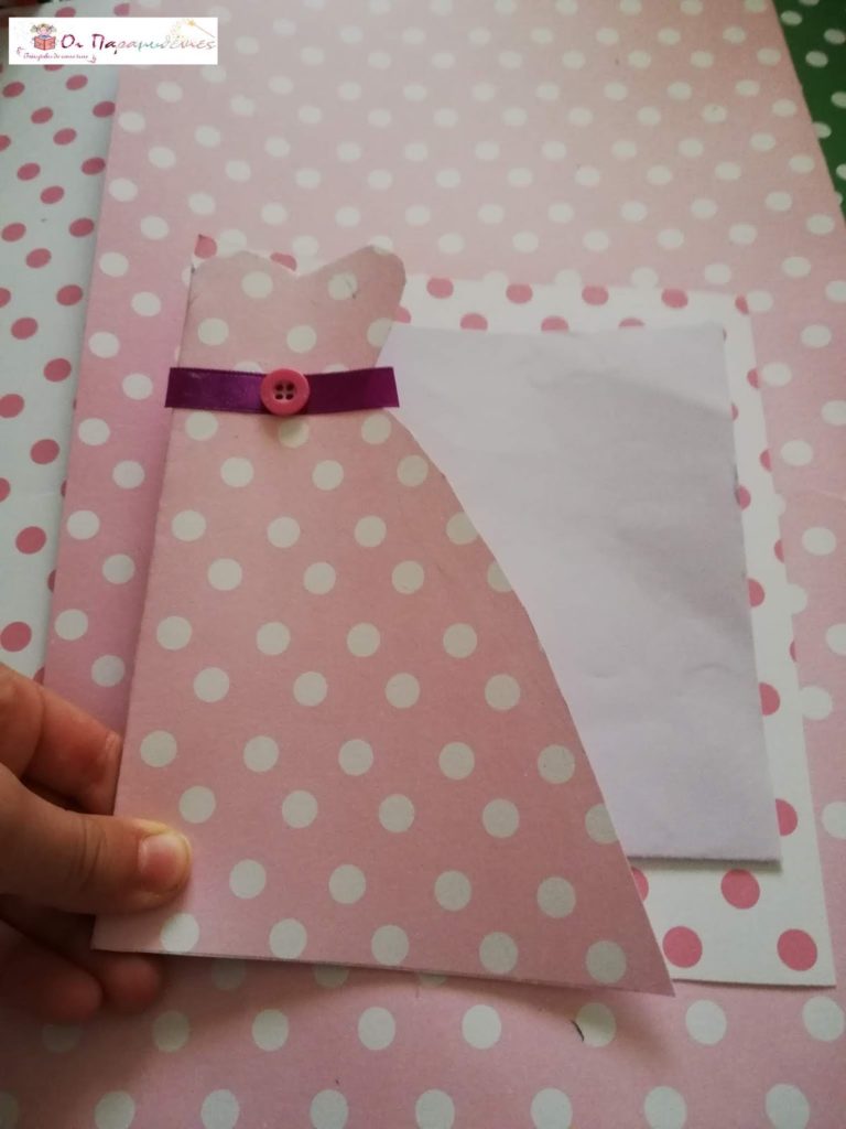 Στη μπροστινή πλευρά της κάρτας σχεδιάσαμε ένα φόρεμα και το κόψαμε.