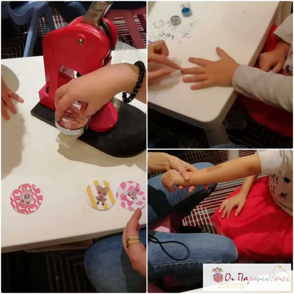 Δημιουργία κονκάρδας, χτενίσματα, περιποίηση νυχιών (στρας- γκλίτερ-αυτοκόλλητα) και πολλές ακόμη δραστηριότητες.