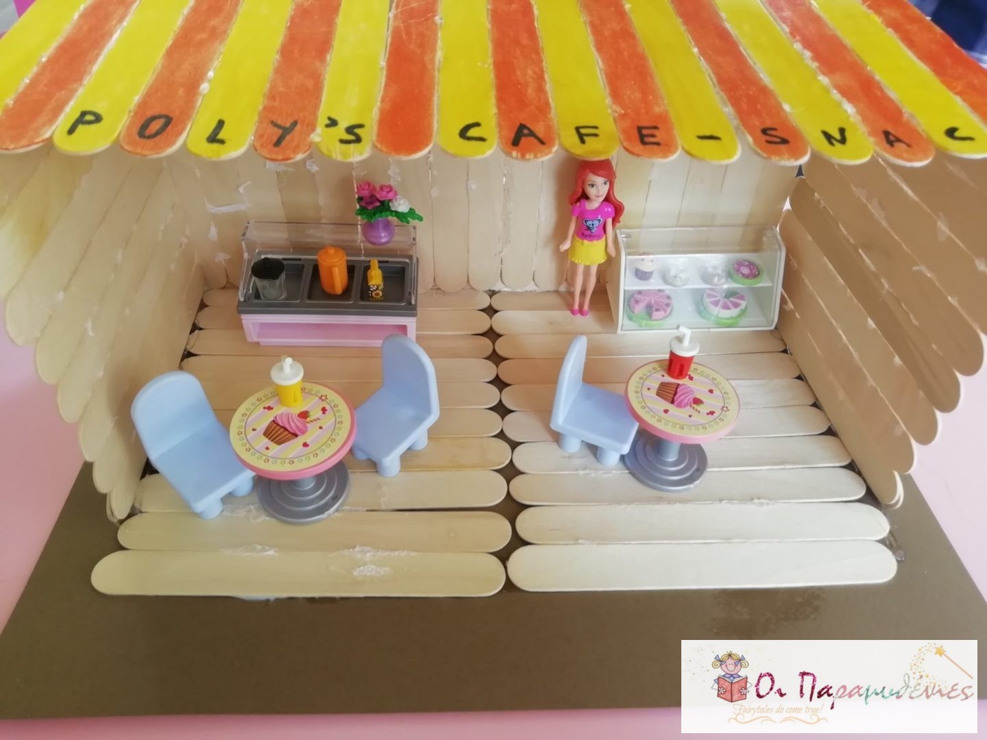 Φτιάξαμε μια μικρή καλοκαιρινή καφέτερια με ξυλάκια για τις μικρές αγαπημένες τους κούκλες.