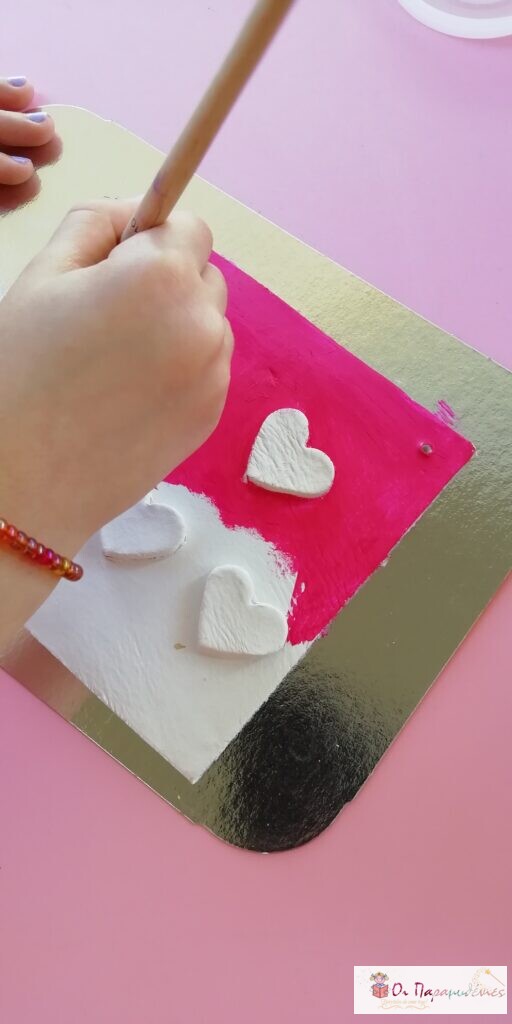 Tip: Κάναμε 2 τρυπούλες στο πάνω μέρος πριν στεγνώσει ο πηλός, ώστε να υπάρχει η δυνατότητα τα καδράκια να μπορούν να κρεμαστούν.