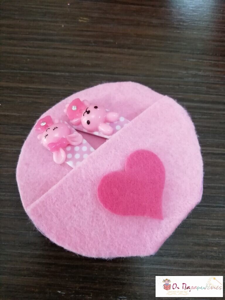 Εκτέλεση: Κόψαμε τσόχα στο χρώμα, στο μέγεθος αλλά και στο σχήμα που θα θέλουμε τις θήκες. Κολλήσαμε τις άκρες τους. Προσθέσαμε τσόχινα αυτοκόλλητα.