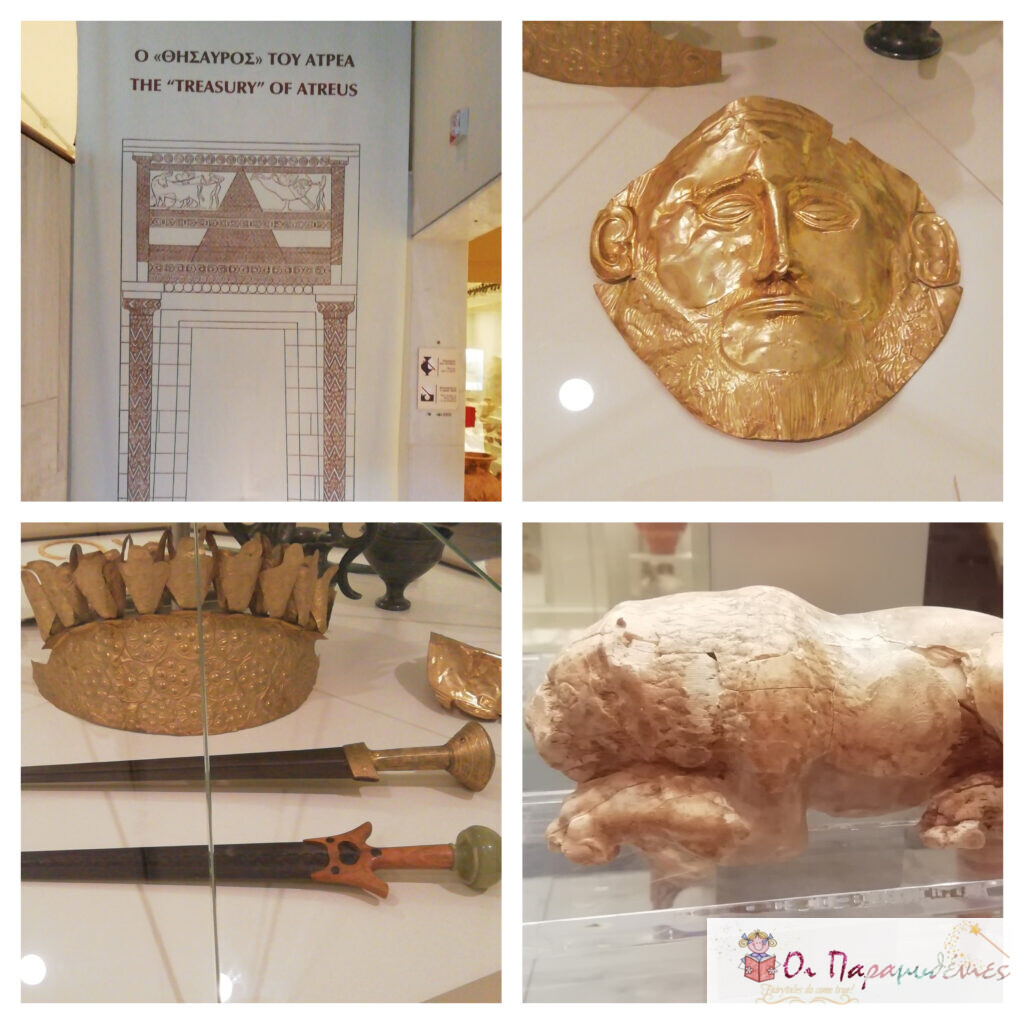 Στο μουσείο των Μυκηνών τα ευρήματα επιβεβαιώνουν τη δύναμη, το πλούτο, τη μαχητικότητα αλλά και το λεπτό καλλιτεχνικό ύφος των Μυκηναίων, κυρίως στα ταφικά κτερίσματα.