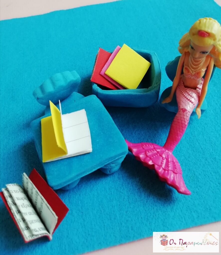Η άλλη παραμυθένια έφτιαξε έπιπλα για τη μικρή της γοργόνα. Ένα τραπεζάκι που τα πόδια του (η βάση) είναι σε σχήμα βότσαλο.