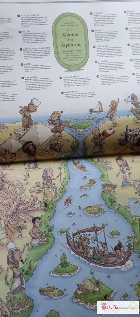 Το βιβλίο ταξιδεύει τους αναγνώστες στο κόσμο και στο χρόνο. Με χάρτες που περιέχουν πληροφορίες για πολιτισμούς, που άκμασαν σε διαφορετικά μήκη της γης, απο την προιστορία ως και σήμερα.