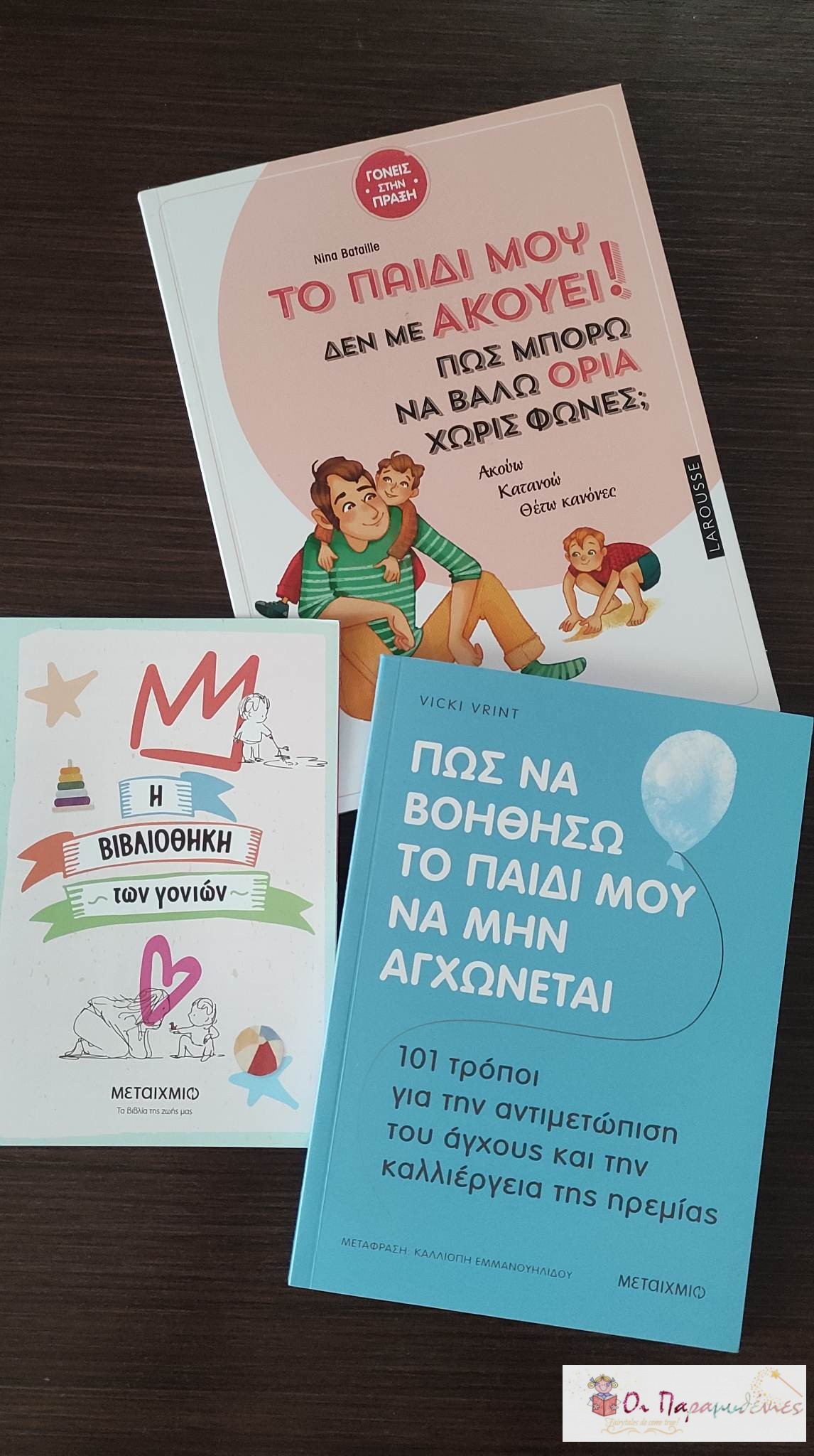 Η βιβλιοθήκη των γονιών των εκδόσεων Μεταίχμιο εμπλουτίζεται με δύο νέα βιβλία. Το παιδί μου δεν με ακούει!Πως μπορώ να βάλω όρια χωρίς φωνές. Και το βιβλίο Πως να βοηθήσω το παιδί μου να μην αγχώνεται.